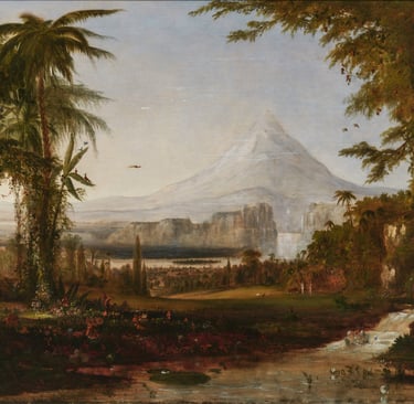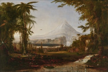 In 1851 Duncanson's first historical painting was “the Garden of Eden” copied after Cole’s painting of the same name. The finished canvas was 5 by 7 ft. He crated it & traveled up the Ohio River to tour it in Pittsburgh. There it was received “As a work of Genus.”. In concert with the exhibition Duncanson orchested a ceremonious presentation of the painting to Rev. Charles Avery as a Symbol of appreciation for the Rev’s efforts on behalf of African-Americans. Several abolitionist newspapers realized the publicity potential of this presentation and ran the story.