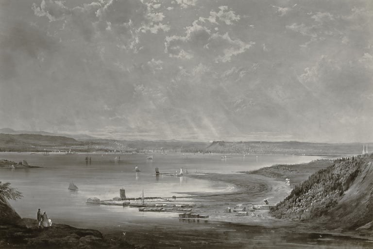 Quebec City and Lévis seen from Montmorency Falls. Photograph of a painting by Robert Duncanson,